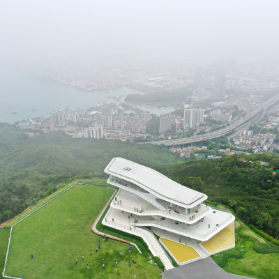 The tram passing the Monster Building. Quarry Bay, Hong Kong, China