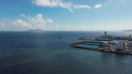 Aerial view of power plant in Lamma Island. Hong Kong, China
