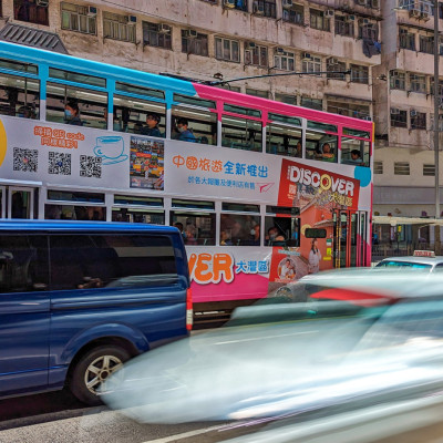 途徑怪獸大廈的電車。中國香港鰂魚涌