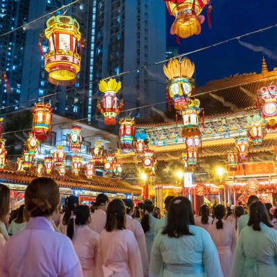 啬色园黄大仙祠举行的七姐宝诞暨园游晚会。中国香港