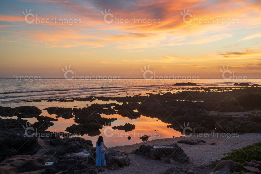 萬里桐海岸夕照。中國台灣屏東縣恆春鎮萬里桐魚村