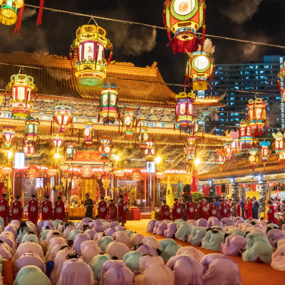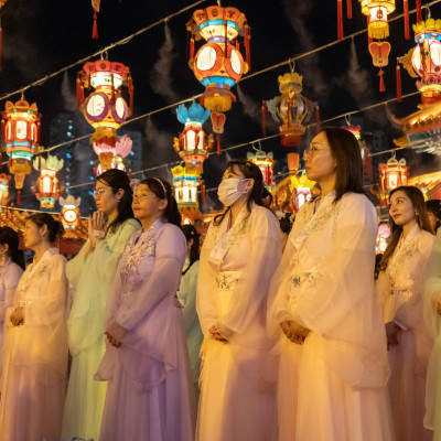 嗇色園黃大仙祠舉行的七姐寶誕暨園遊晚會。中國香港